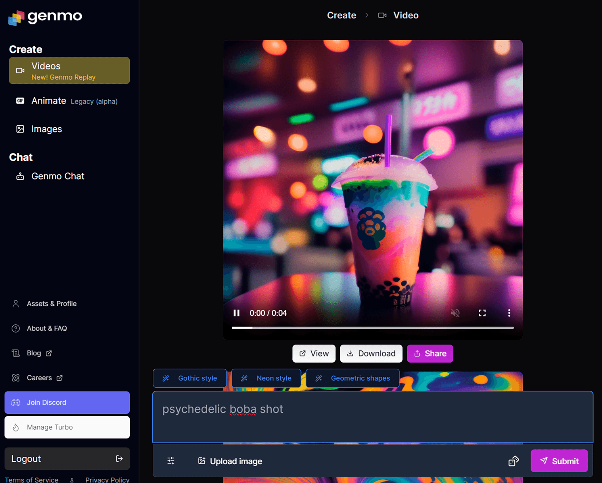 We’ve already seen some incredible solo-made video creations such as the Galactic Menagerie and The Grand Hogwarts School, which are Star Wars and Harry Potter movie trailers in the style of Wes Anderson. Both of these clips just scratch the surface of what’s possible here as controllability improves. At NEA, we created this short film entirely from clips generated on Genmo.