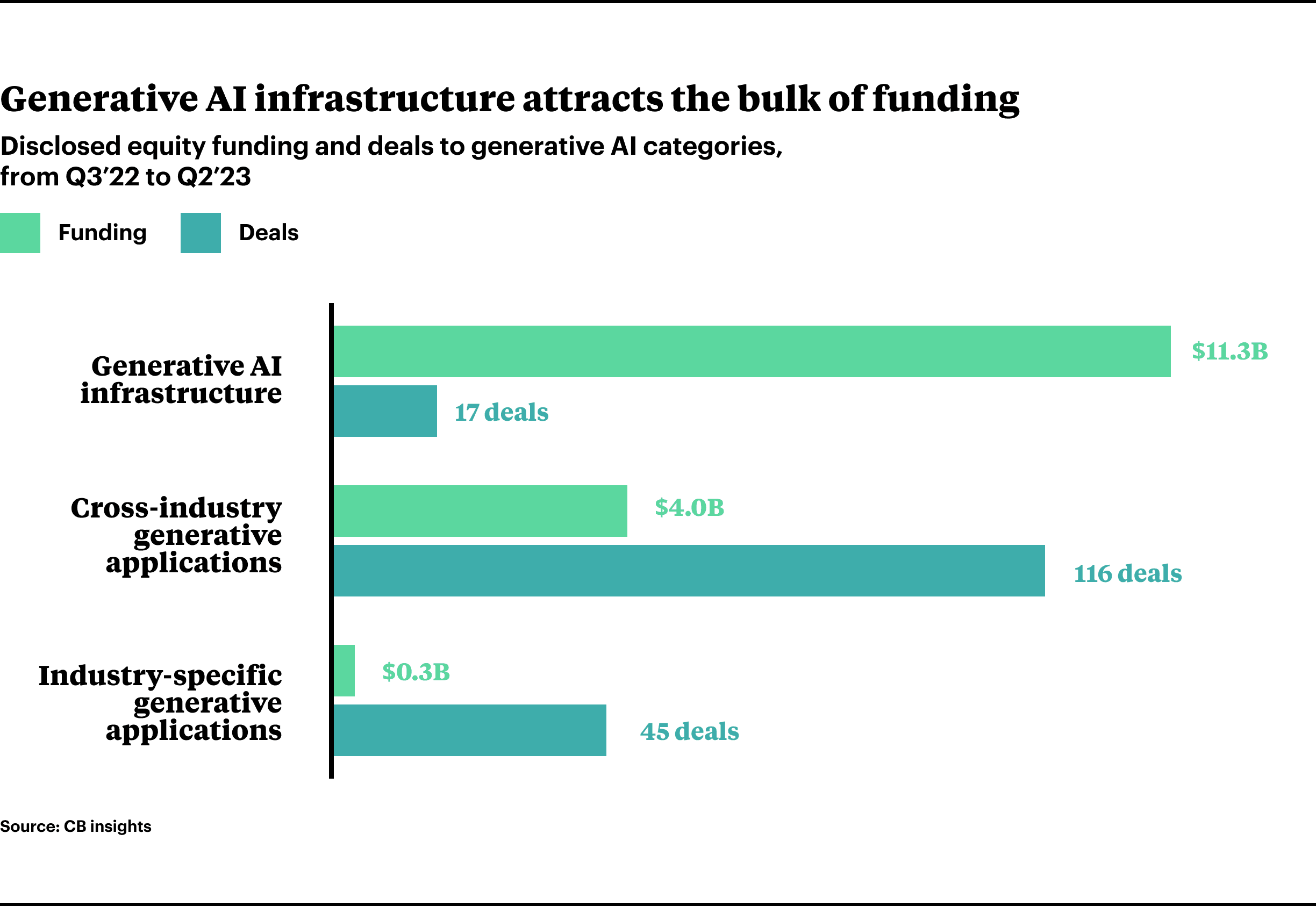 Other categories are rapidly taking shape. Research firm CB Insights says VCs have invested $11 billion in 17 AI infrastructure startups since the middle of 2022. That’s almost four times as much as has been invested in AI applications, according to the study. And at an average of $650 million, investors are clearly hoping these entrepreneurs will move boldly to grab the pole position in these markets. Here are a few key categories: