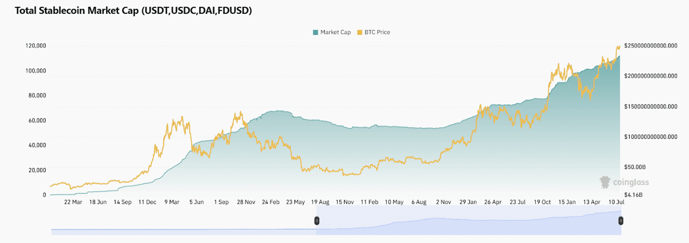 Image 5: Coinglass, Total Stablecoin Market Cap (USDT, USDC, DAI, FDUSD), accessed July 2025