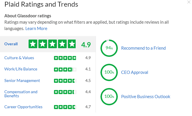 Glassdoor data for Plaid, January 20203. Never compromise on taste and design.